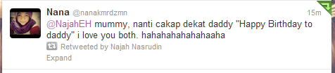 Ni haa kawan-kawan saya kat Twitter sibuk benar bercakap pasal birthday awak. Mereka suruh saya wish awak. Kalau tak percaya, awak tengok sendiri.